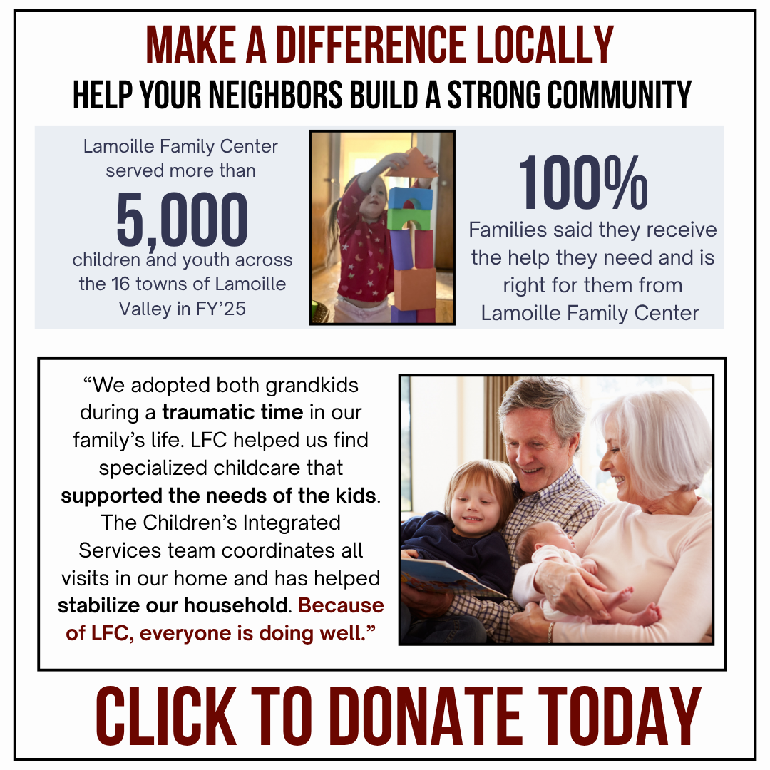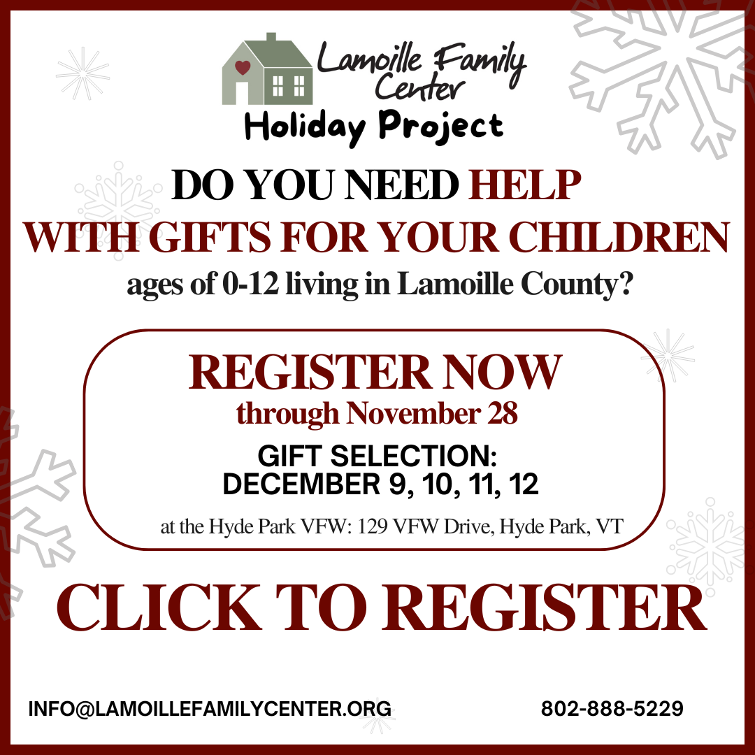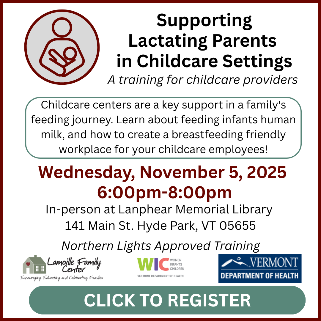 Please click here for a paper Child Care Financial Assistance application. You can drop it off or mail it to Lamoille Family Center.